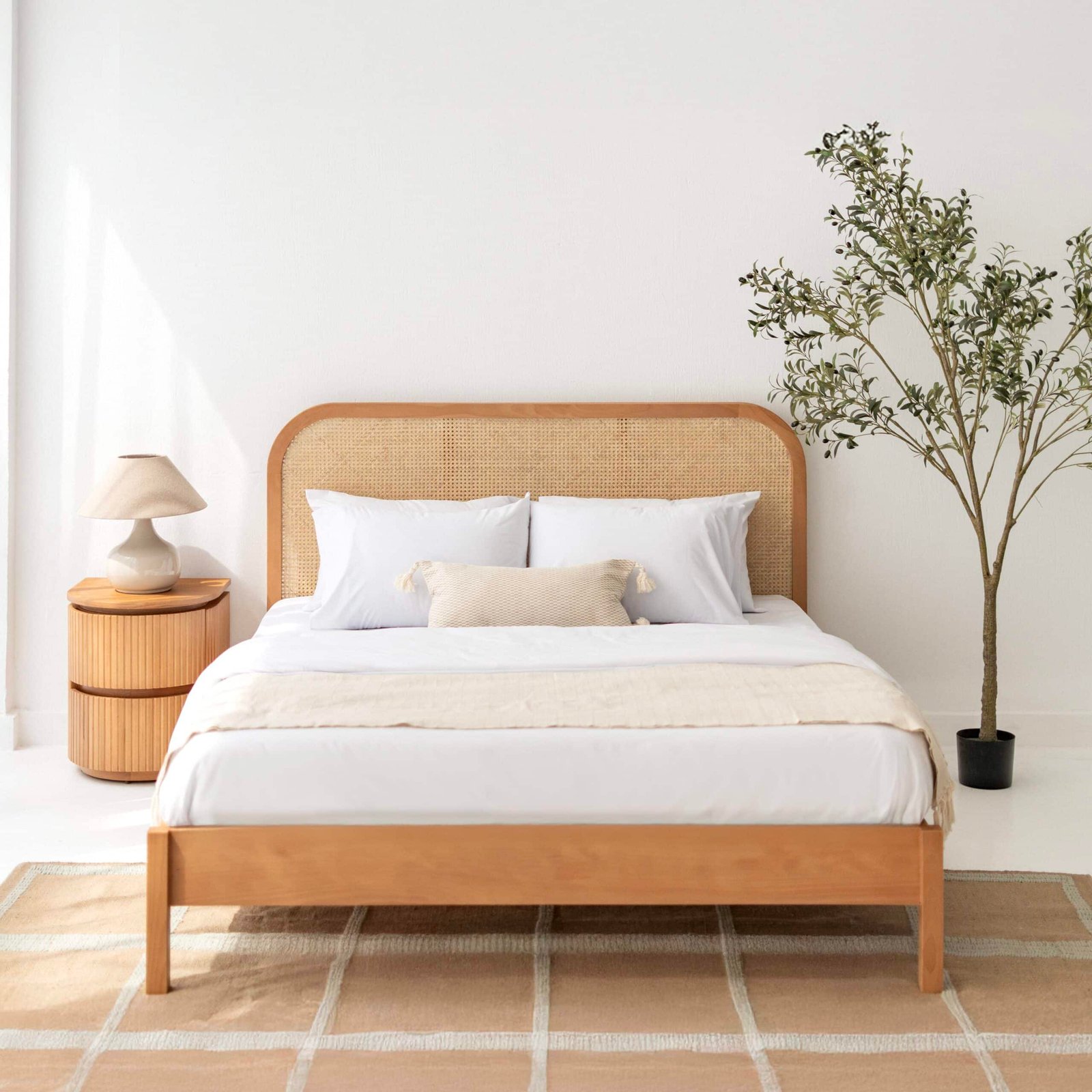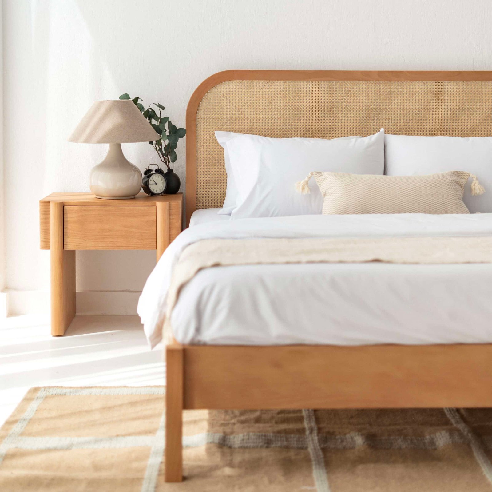 Deva Rattan Bed + 2 Beyla Night stands