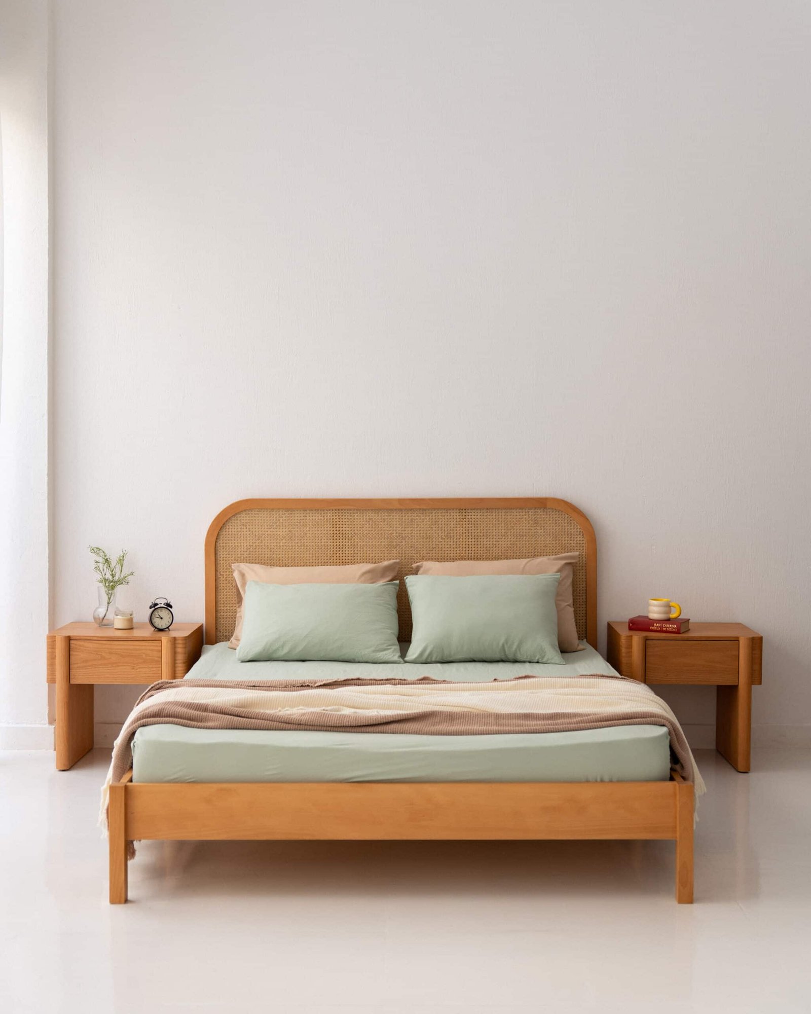Deva Rattan Bed + 2 Norma Night stands